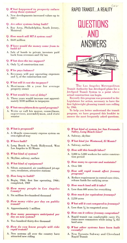 By the time LAMTA moved away from the monorail, it was already too late. The public was enraged and opinion against the LAMTA had turned negative. A bill was introduced in the California State Senate to abolish the LAMTA and hold it more accountable to the public. LAMTA’s inability to effectively communicate with the public about why the monorail was a bad idea cost the entire region dearly. Even though the LAMTA had managed through considerable difficulty to find a transit solution for Los Angeles, their plans were not implemented for another three decades. The PR fiasco set transit in L.A. back considerably.