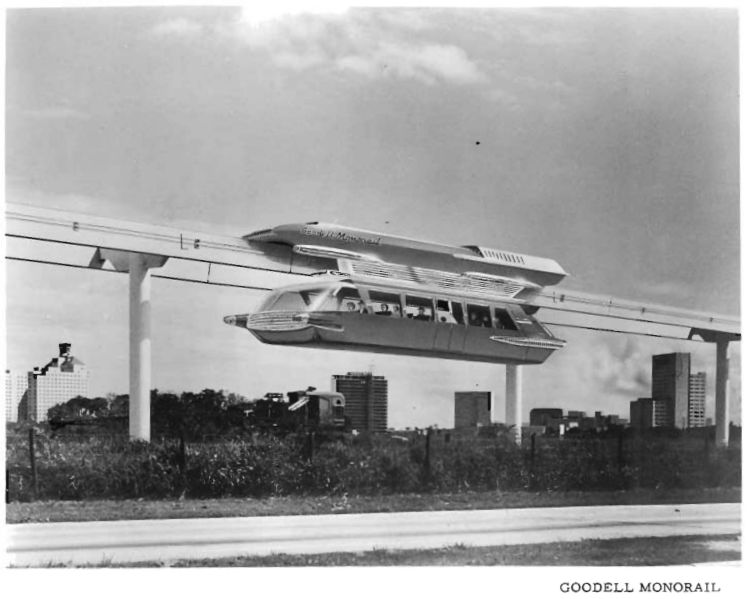 Goodell, a Texas-based company which had only ever built a small scale prototype proposed a too ludicrous to be believed jet-powered monorail that would travel between downtown and LAX at 90 miles an hour. Even Los Angeles based aerospace companies Northrup and Douglas submitted proposals. It had seemed L.A. had become monorail-crazed.