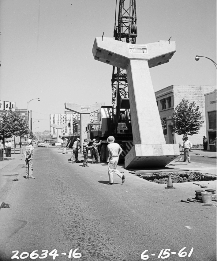 Alweg pointed to the Seattle Monorail, built for the World’s Fair as an example of their ability to construct a monorail, but the LAMTA finance office had shown that the Seattle Monorail was only profitable because it was heavily subsidized by admissions tickets to the world fair itself, and that the promised returns from fare-box revenue alone would not be able to cover the ridership costs either for the Seattle Monorail or their proposed monorail from El Monte to Century City.