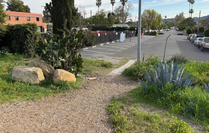 The Los Angeles City section is located directly east of the Metro North Hollywood Station. That L.A. section of the path has always had informal access to the south, via gaps in fences.