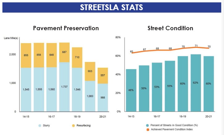 In the longer term, the drop-off is even more dramatic. A decade ago, StreetsLA resurfaced 600-800 lane miles annually.