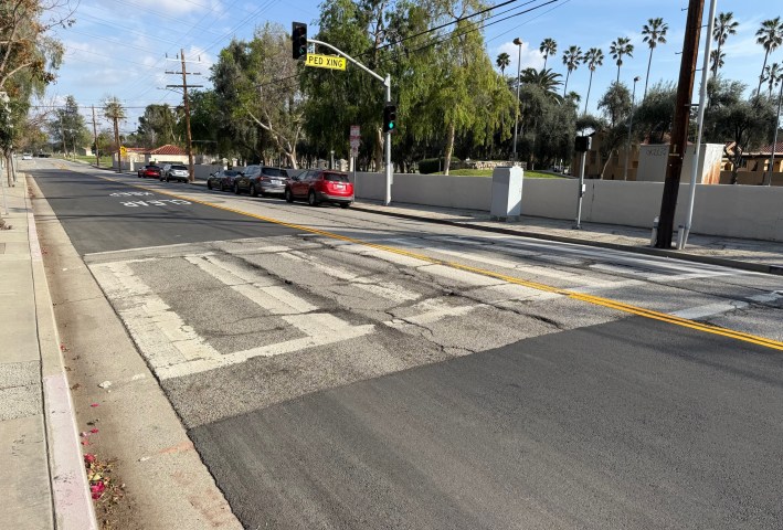 City crews will fix the sidewalk and add a curb ramp but not add a crosswalk, said Murphy (painting a crosswalk would be LADOT’s responsibility, whereas BOE or StreetsLA would build a curb ramp). “People walk along a sidewalk and they have to cross the street,” she said. “People don’t go in a donut around an entire block and never leave that block.”