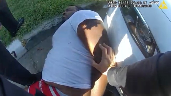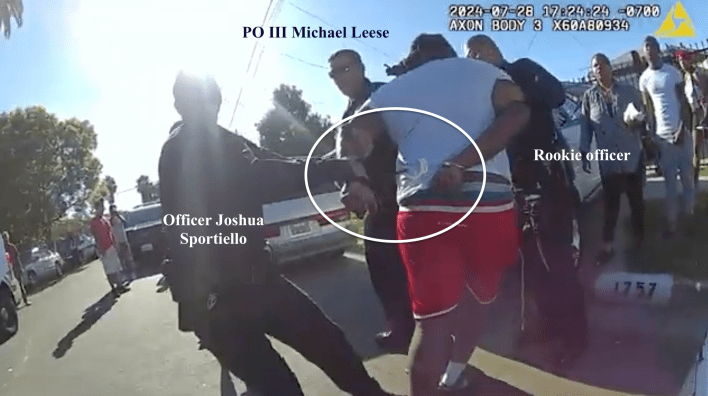 Alexander Donta Mitchell – the man who LAPD officer Joshua Sportiello pulled out of his car, searched, handcuffed, punched in the face, and hogtied for being double parked on a quiet side street in Watts in July of 2024 – will be back in court next month for yet another preliminary hearing on two misdemeanor charges of resisting, obstructing, and/or delaying a peace officer.