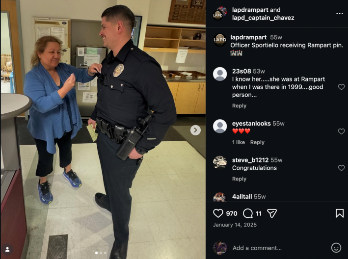 Or were they worried about discovery and what might be lurking in Sportiello's personnel files? 2024 was certainly quite the year for Sportiello. He is being sued for an April 2024 assault on well-respected South L.A. Cafe owner Joe Ward-Wallace. And in June of 2024 – just a month before his assault on Mitchell – he pulled someone over, refused to tell them why, opened their door and grabbed their wrist as they reached for their insurance, and threatened to physically pull them out of the vehicle. He also conducted an unlawful search and was caught lying to investigators about his motivations for doing so. [See that complaint investigation and resolution here, courtesy of William Gude/FilmthePoliceLA]