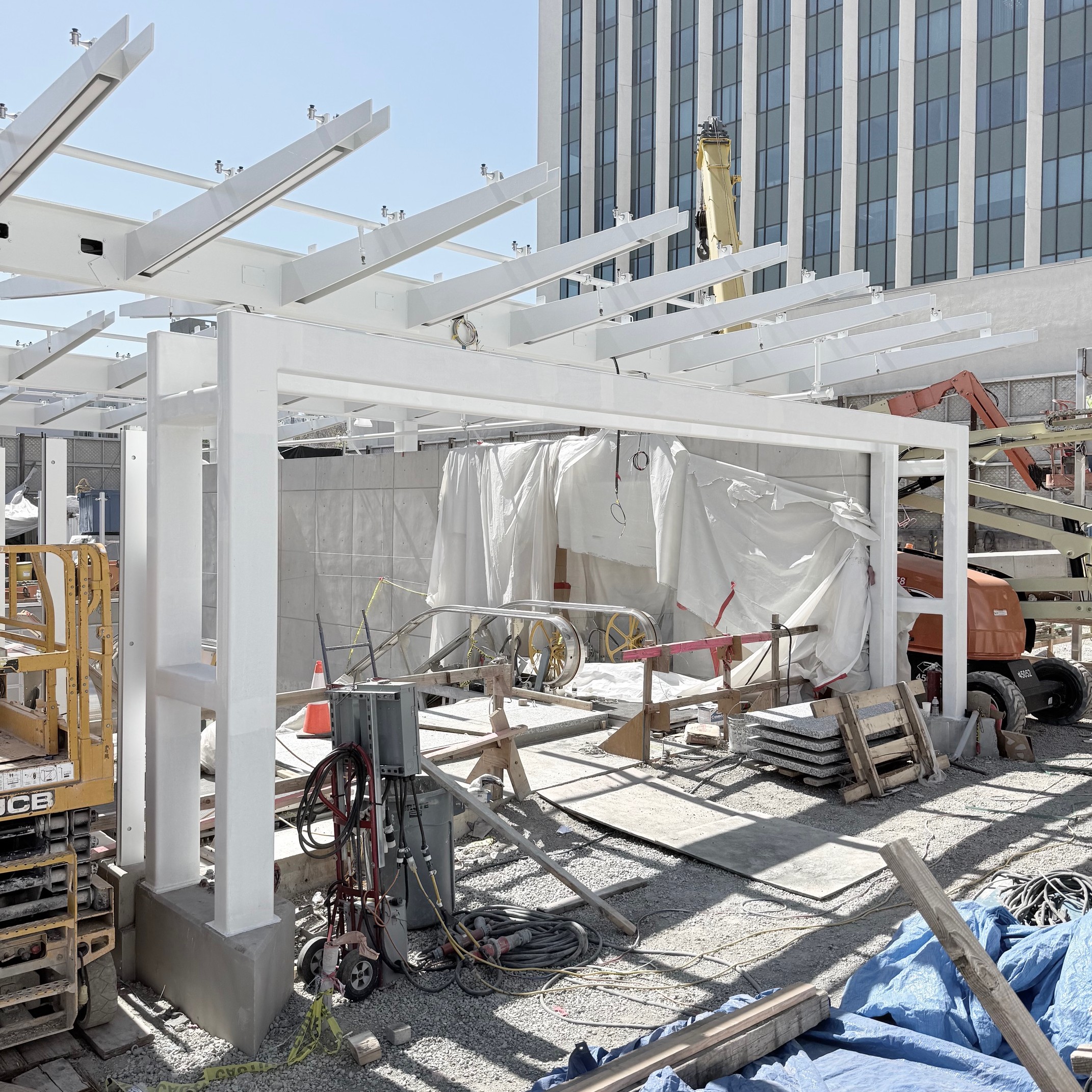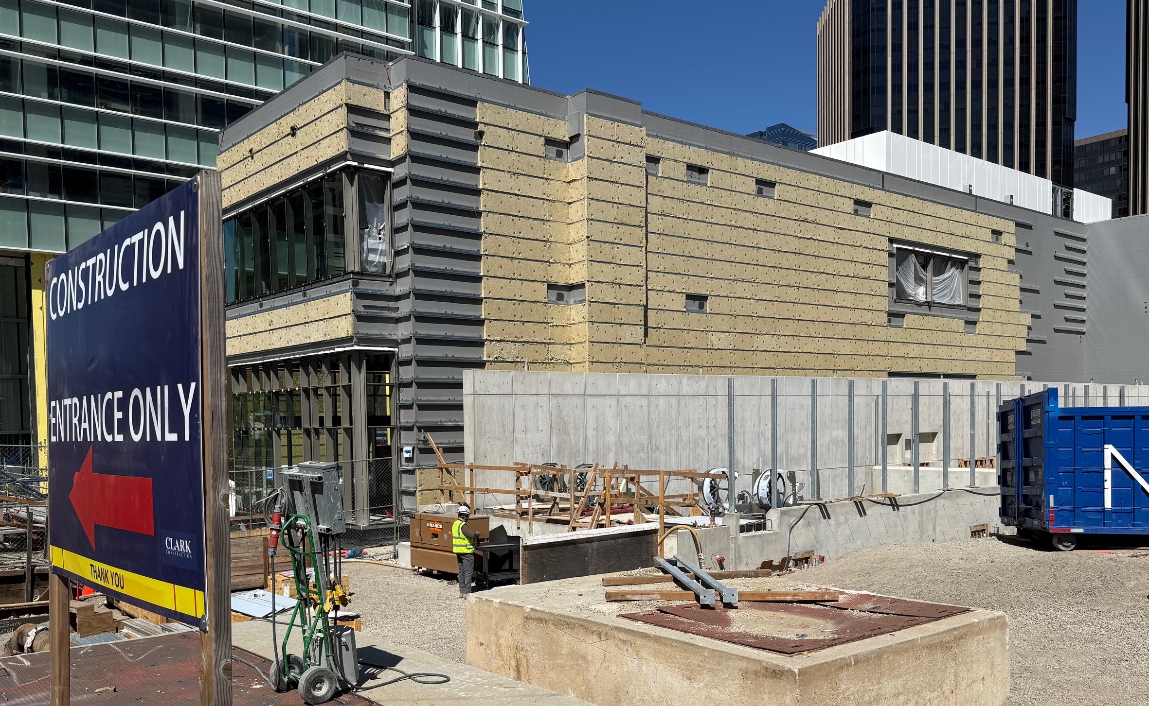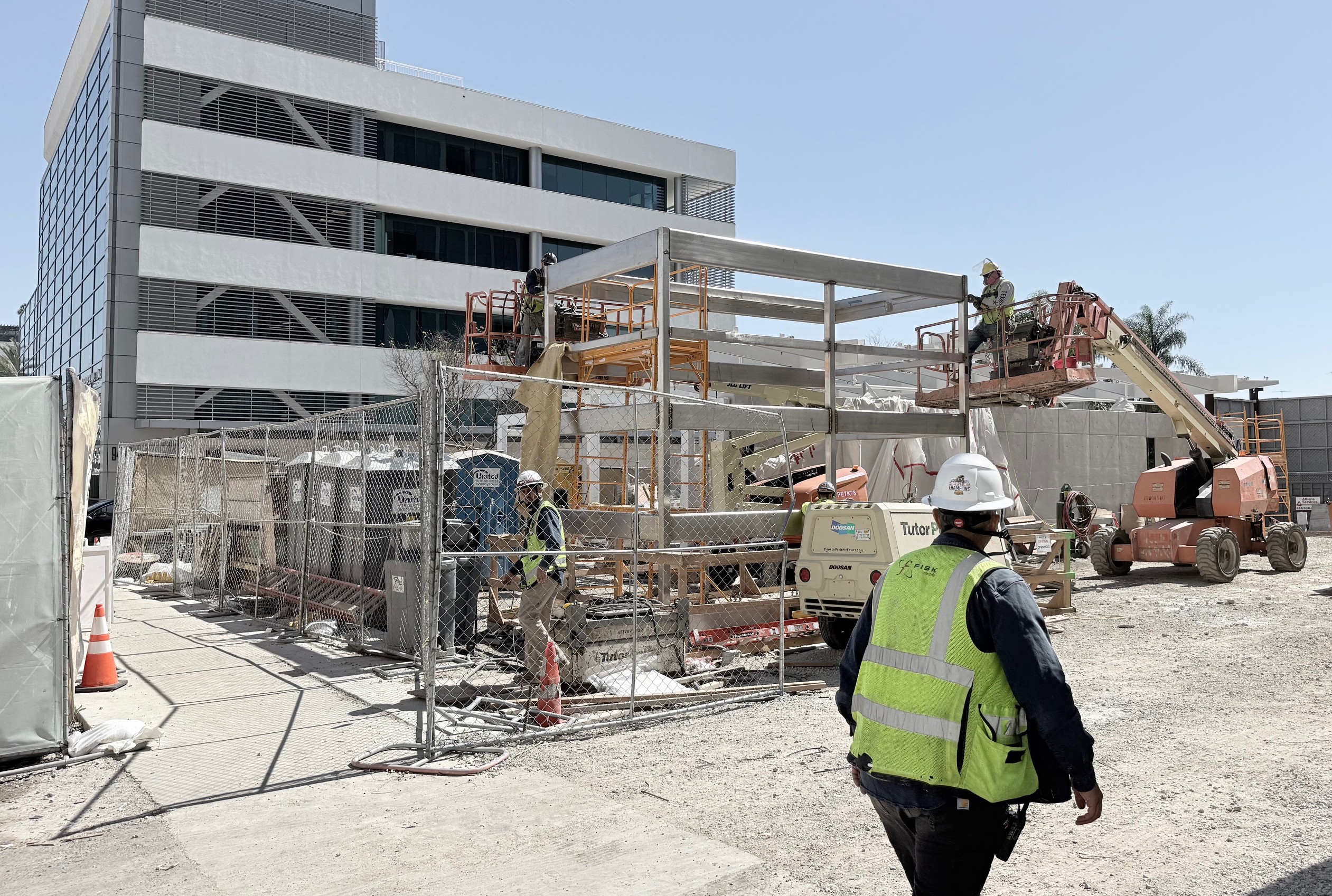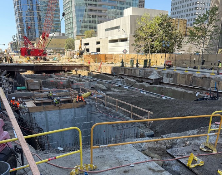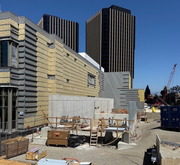 A lot of the subway construction progress is underground, therefore difficult to see on the surface. Wilshire bus riders and Century City workers may have noticed section 2 subway station construction beginning to peek above ground. Below are photos taken today.