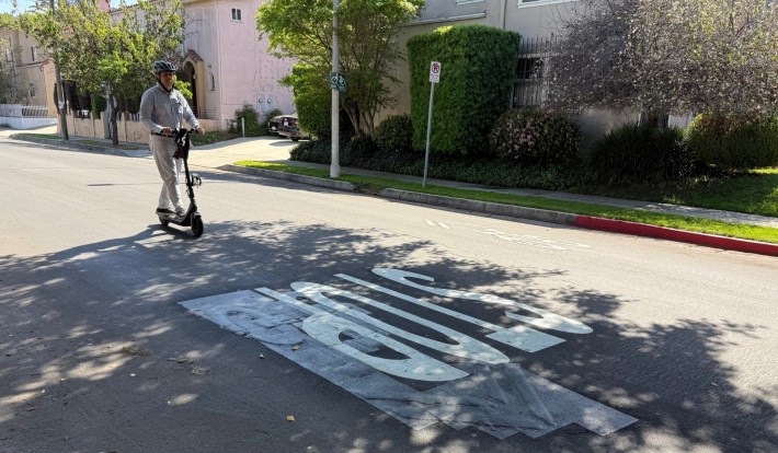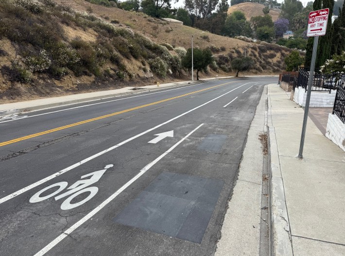 Many bikeway removals are quieter. These include 48th Street and Neptune Street, where the city Transportation Department (LADOT) erased bike lanes in order to increase on-street parking.