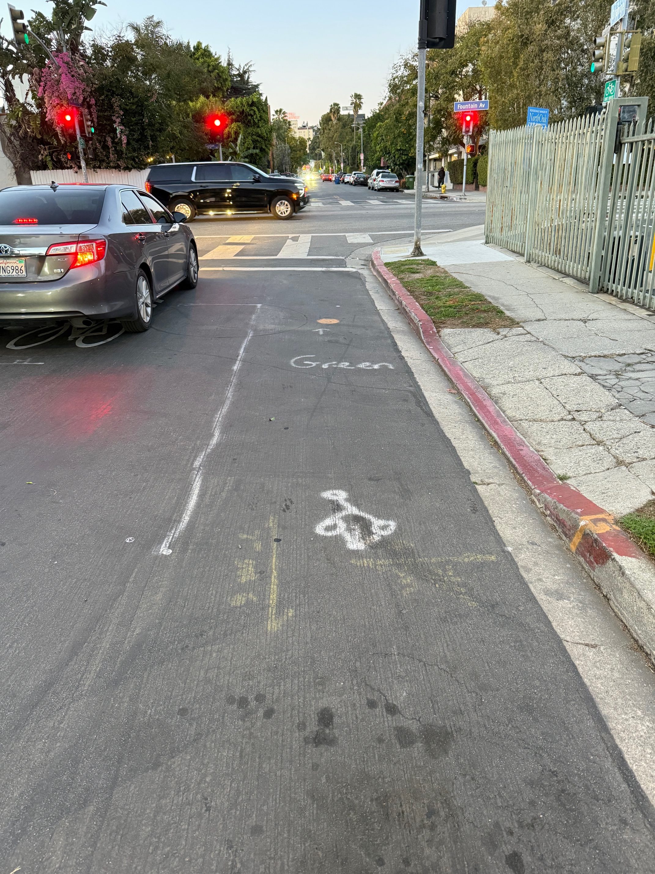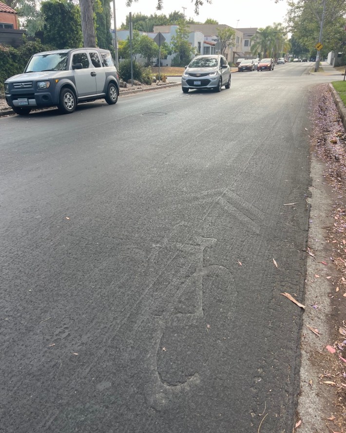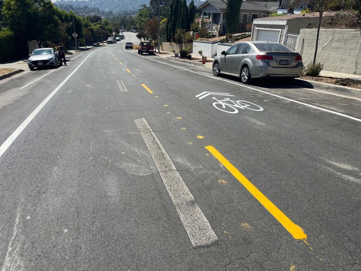 In 2024 LADOT added new bike lanes on Townsend Avenue in Eagle Rock. The city mistakenly painted one bike symbol in the wrong place, then (after my suggestion) corrected it.