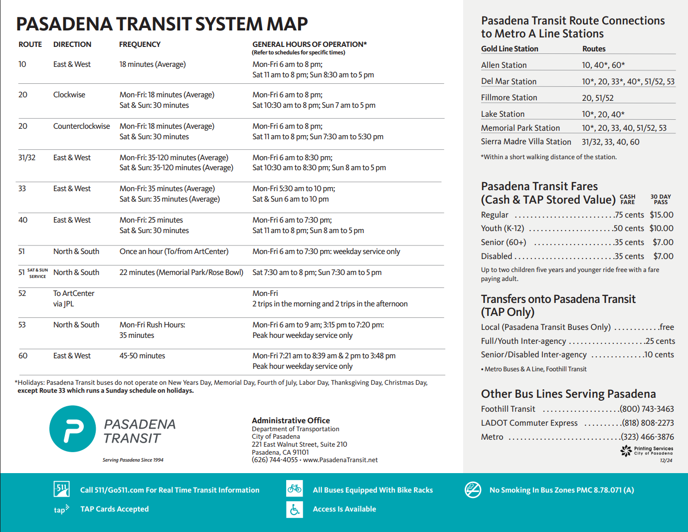 - Pasadena Transit assumed operation of Metro Route 177 in December 2024