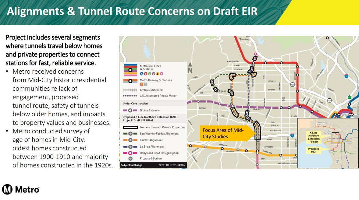 The Mid-City tunneling concerns were first raised in late 2024. Metro subsequently did further technical studies, which led to modifying the proposed alignment to minimize tunneling under homes (while slightly reducing train speeds).
