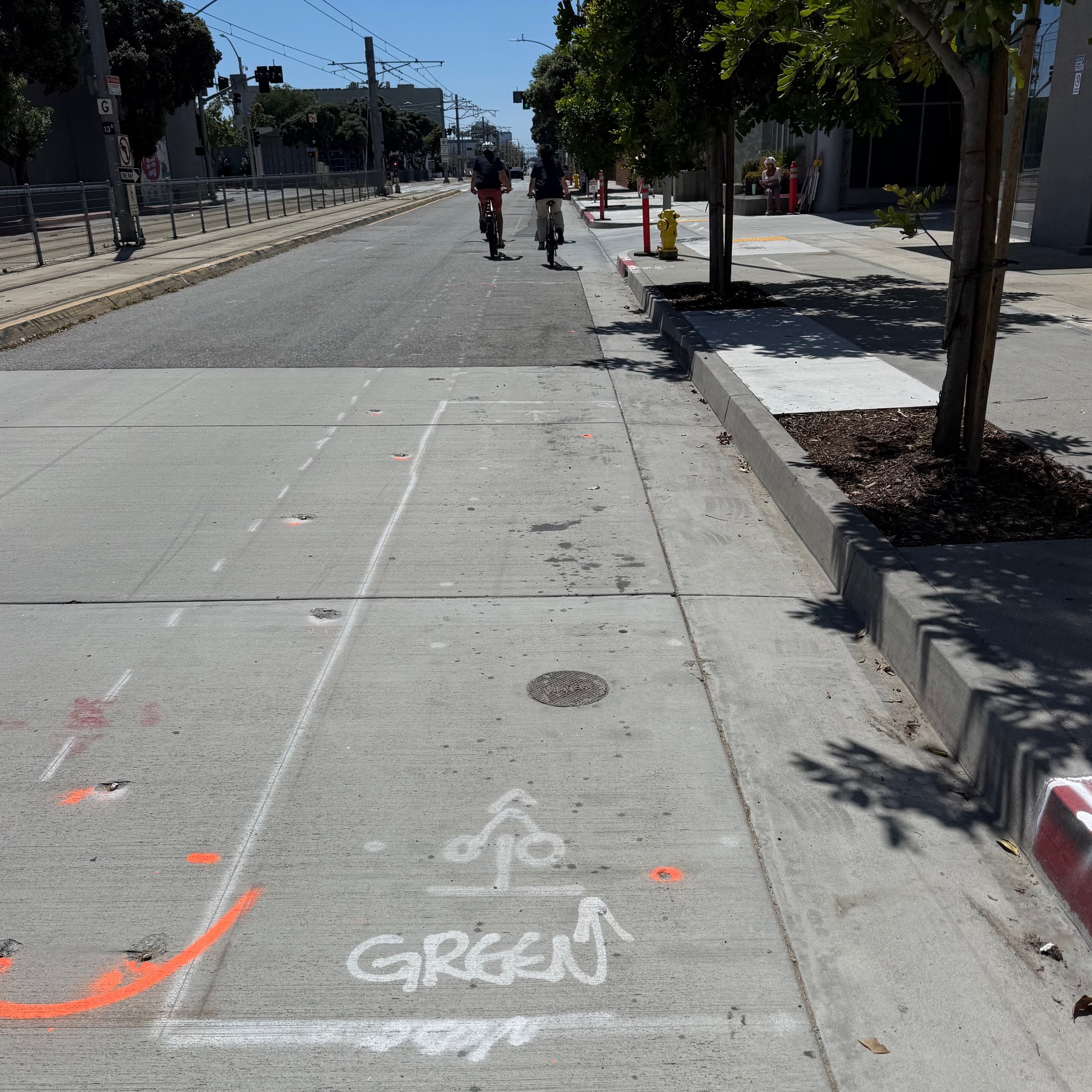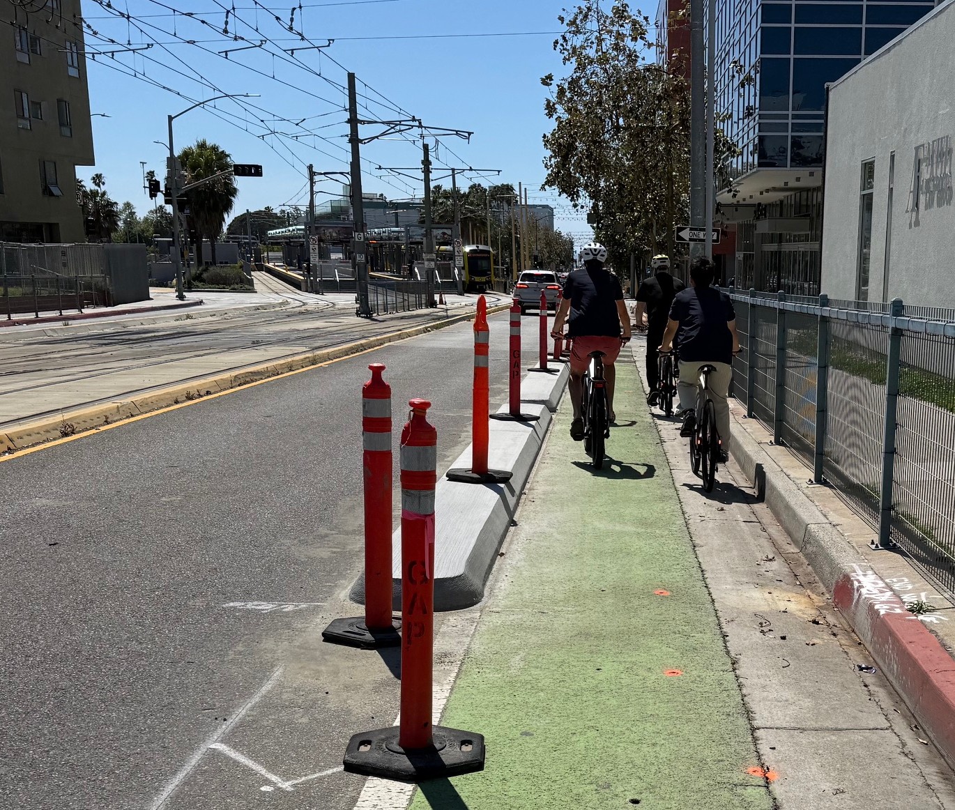The project is also adding about a fifth of a mile of new protected bike lanes on Adams Boulevard. This short stretch closes an existing bikeway gap, connecting from Washington to Los Angeles’ Adams Boulevard bike lanes.