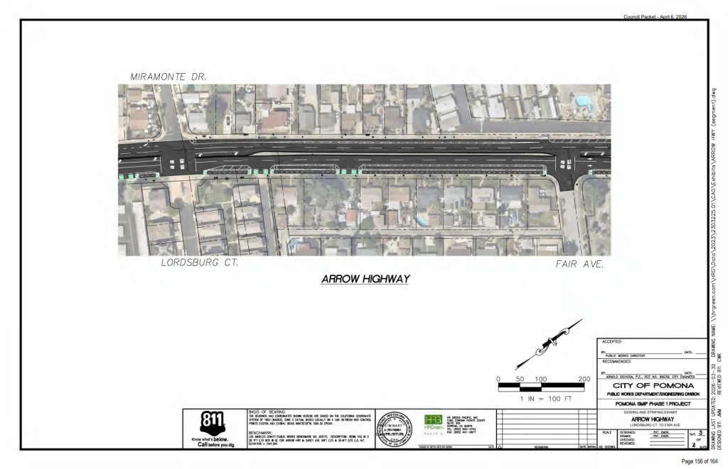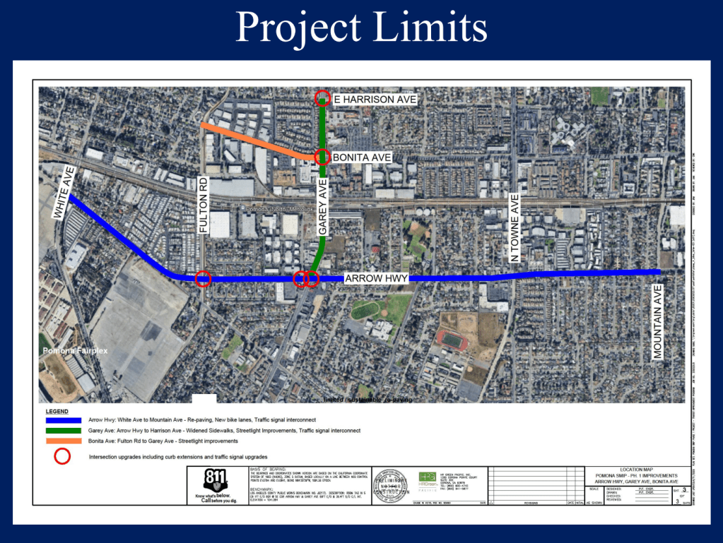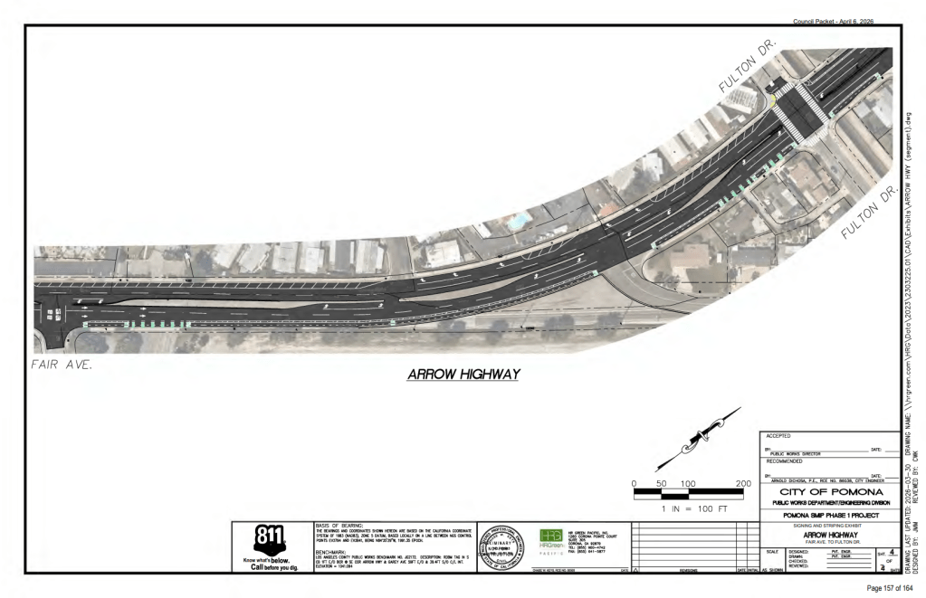The project is funded by the San Gabriel Valley Council of Governments (SGVCOG), administering Metro Active Transport (MAT) funds. The design originates from Pomona’s Public Works Department.