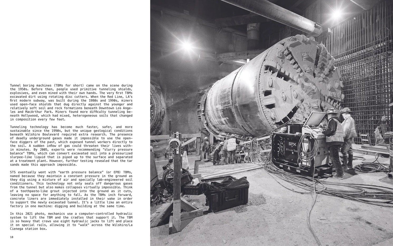 The book gives readers a sense of the massive tunnel boring machine (TBM) technology that simultaneously digs a tunnel, and lines it with a permanent pre-cast concrete shell.