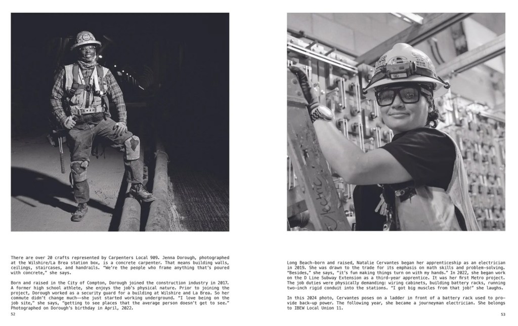 The 80-page paperback is written by historian India Mandelkern (one of the writers behind Metro’s The Source), and propelled by the noble heroic photographs of Ken Karagozian. The book tells the story of the planning and construction of the D Line subway beneath Wilshire Boulevard. Much of the book’s focus is on the workers – miners, carpenters, mechanics, and many others – who did, and are doing, the actual construction.